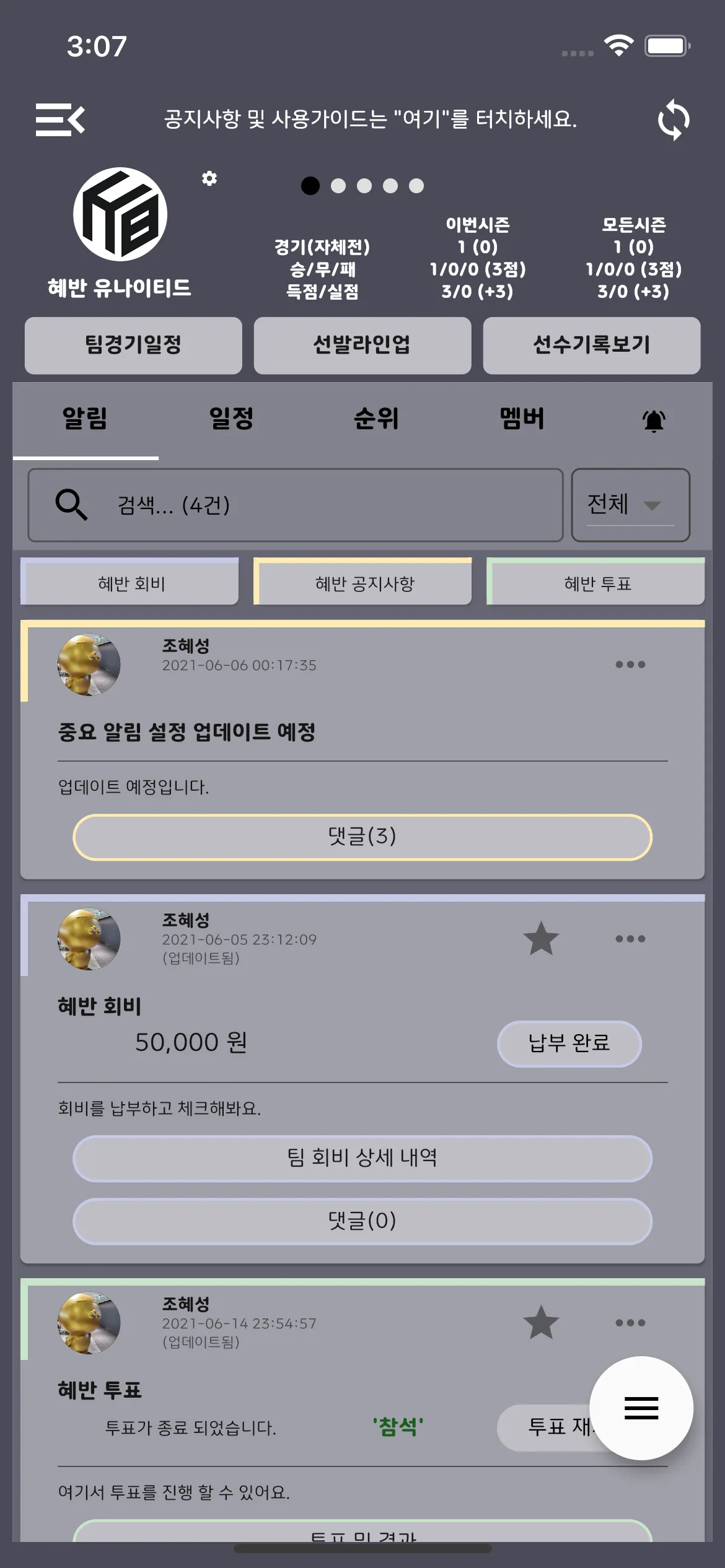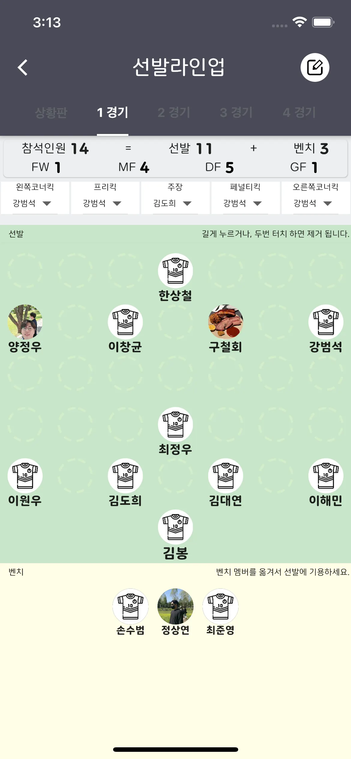 선발라인업의 '상황판'에서는 멤버들이 출장하는 순서와 횟수, 포지션을 대략적으로 보여 줍니다.