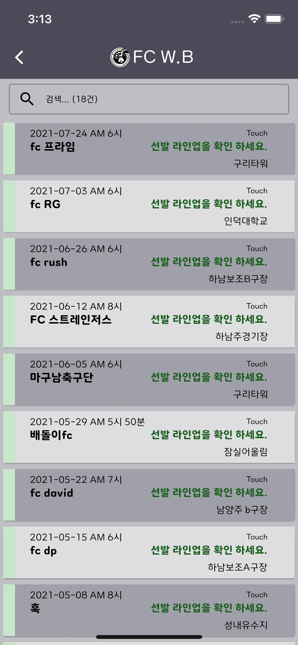출장하는 경기에 해당하는 순서를 터치하면 선발라인업을 볼 수 있습니다.